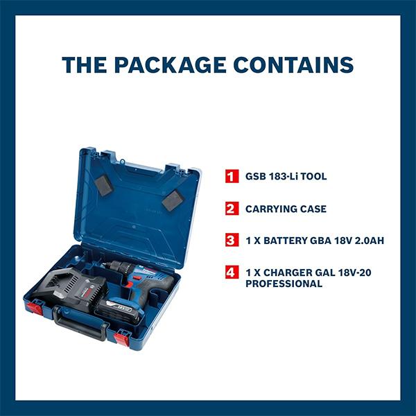 Bosch GSB 183-LI Kit (1 Battery) 18V 2.0Ah 10MM Impact Drill Driver